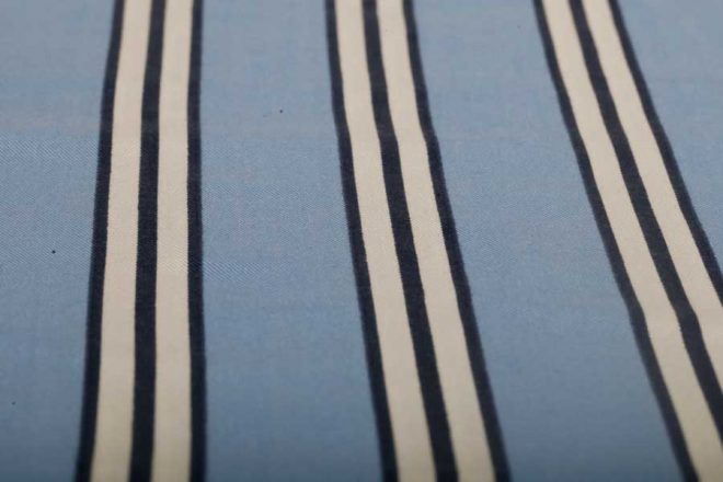 Fabrication: 100% Viscose Weave: Twill 2/1(s0 Construction: 30 x 30/114 x 72 Dye Type: reactive dyed Width: 54-55″ GSM: 145(-/+)5% (before wash) Finish: soft Color: Stripe print Fabric Code: H4VR31RP/F Ref SM: 1011
